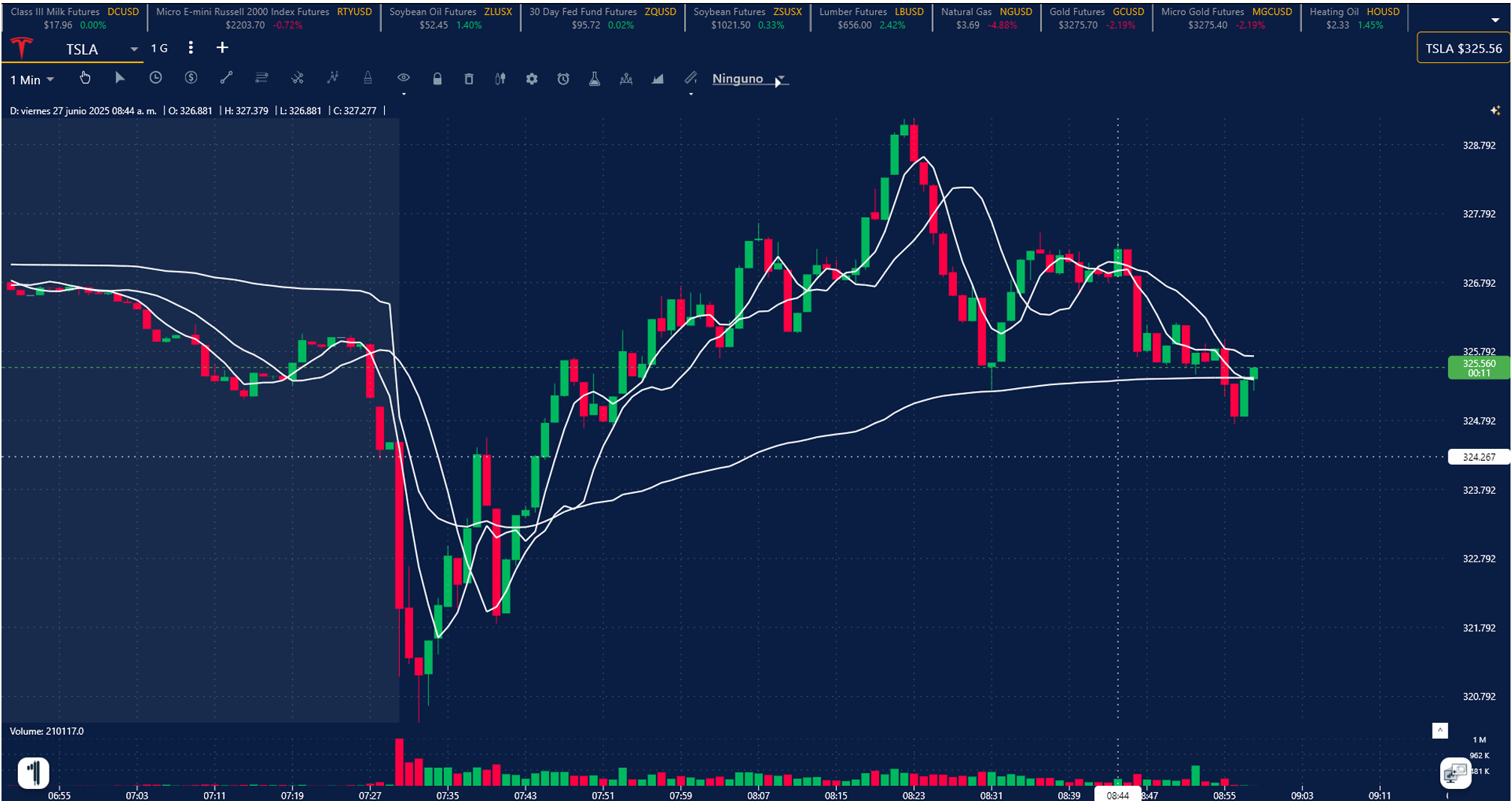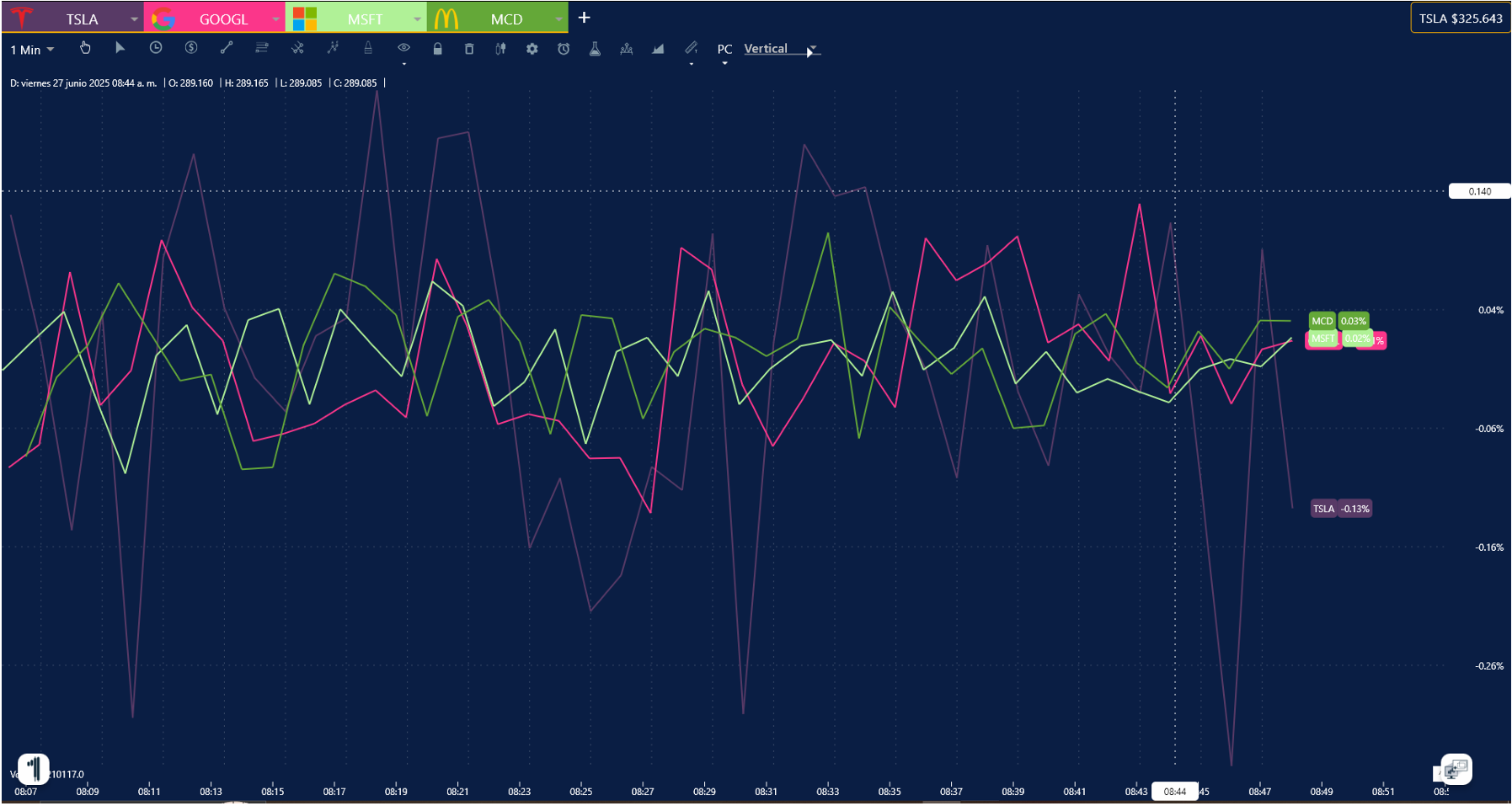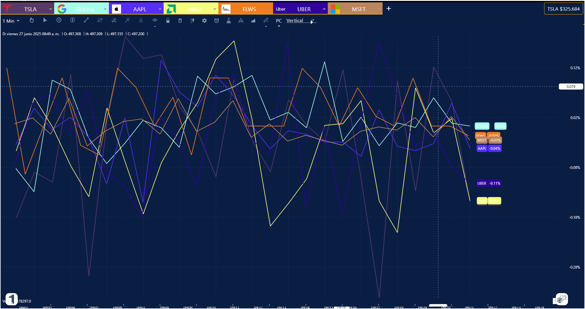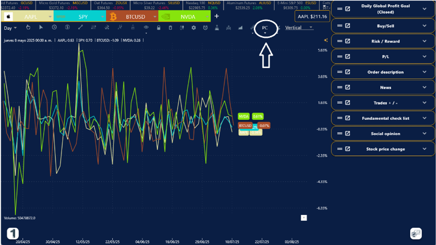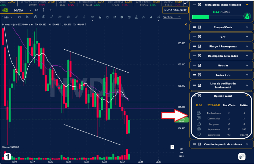 4. En la ventana de tu Grafica o Simulador, presiona el ícono de estrella del lado superior izquierda y listo, aparecerán las líneas automáticamente sobre la empresa seleccionada.