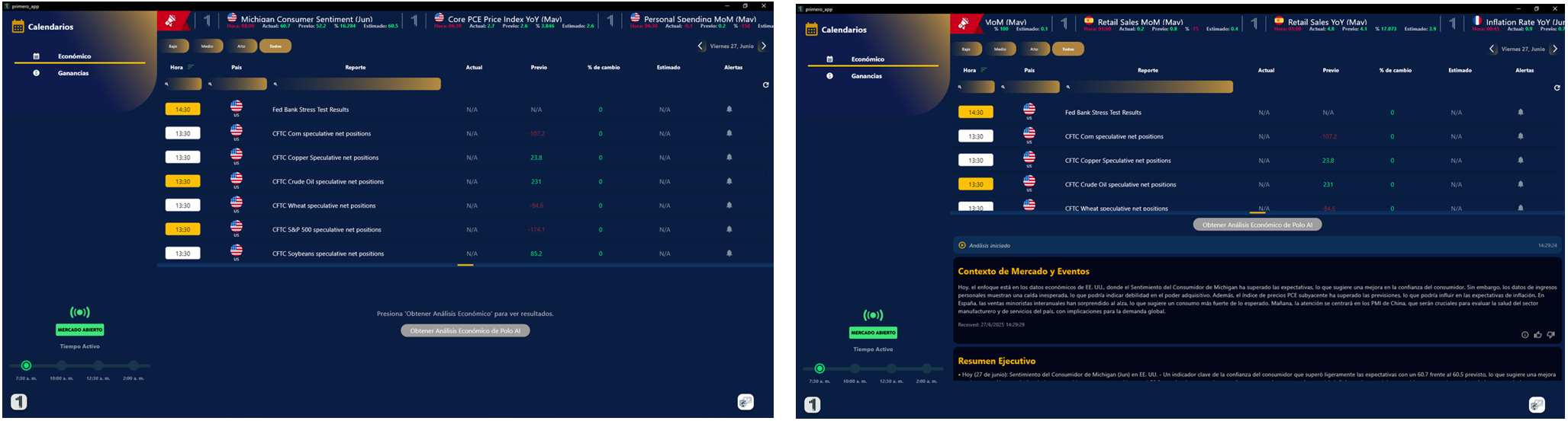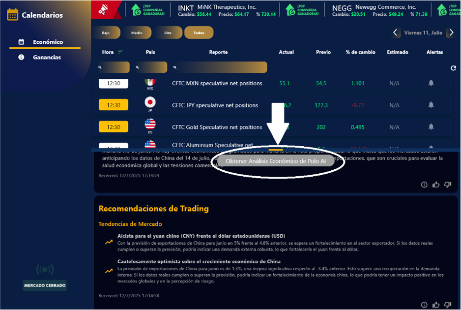 1. Para obtener el análisis económico con Polo AI, solo dale clic en el botón gris y comenzara el análisis.