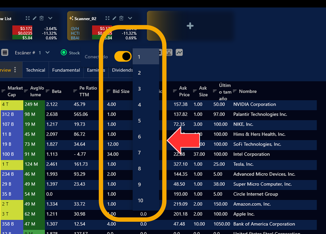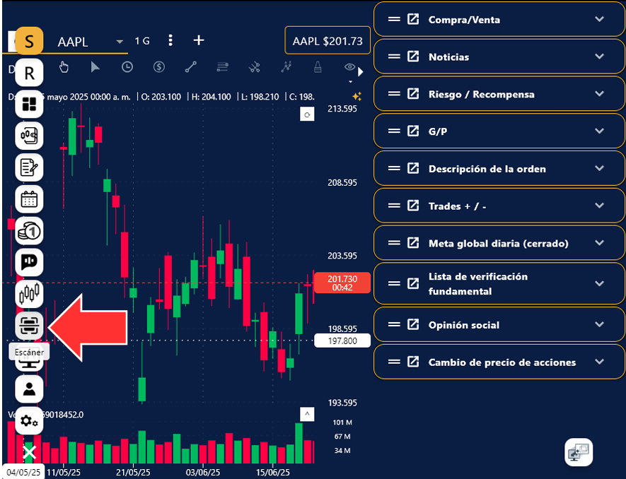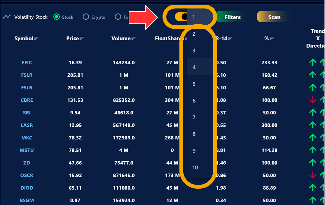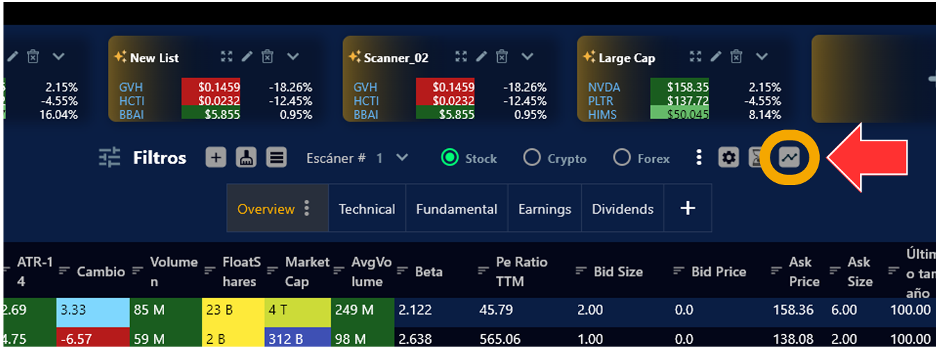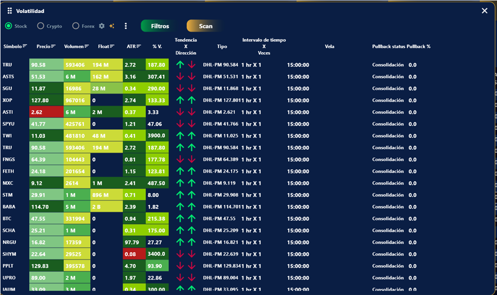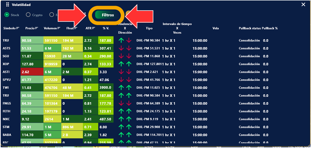 1. Solo da clic en el ícono de volatilidad dentro del scanner