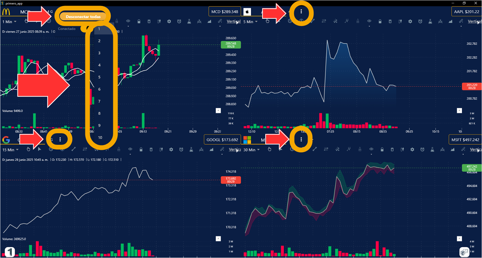 La Grafica de Primero Trader es una de las más avanzadas que existe en el mercado y ahora con la fantástica oportunidad de utilizar su multigráfica que te permite tener acceso y ver hasta 6 graficas al mismo tiempo en diferentes mercados y tiempos. Haz tu análisis técnico, crea configuraciones personalizadas, identifica puntos clave de entradas y salidas de cada trade, visualiza tus inversiones de acuerdo con tu estrategia, identifica fácil y claramente tus soportes y resistencias en tiempo real y mucho más