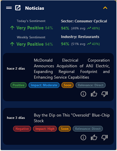 10. Si quieres encontrar lo más relevante de la empresa en la que estas invirtiendo, dirígete a la sección de noticias. Dale clic a la sección que te gustaría leer y te saldrá la información. Todo en tiempo real y con Inteligencia Artificial Integrada