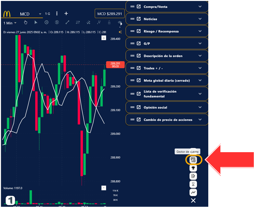 17. Dirígete al icono de Gestor de cuenta, que se encuentra en el menú del rombo blanco del lado inferior derecho de la plataforma.