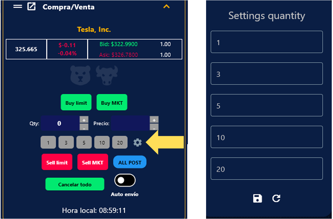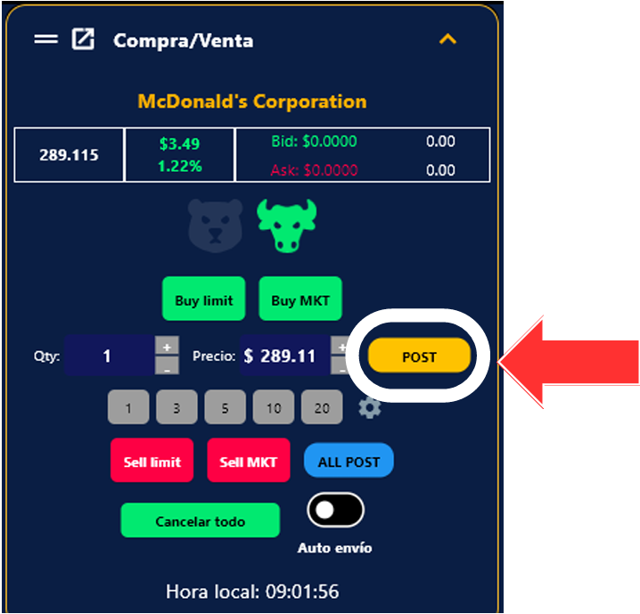 8. El botón de post te permite actualizar de forma rápida la cantidad de tu posición que tengas abierta.