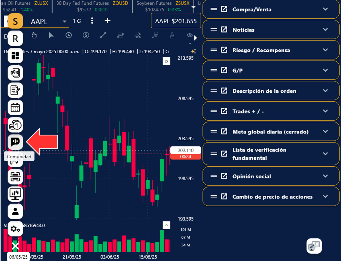 ¿Necesitas más pantallas? Primero Trader tiene la solución. Ten a tu alcance diferentes ventanas, por ejemplo, graficas, escáner, chat de la comunidad, data fundamental, etc., para una mejor visualización de tus estrategias y movimientos. El acceso a otra información en el mismo espacio contribuye a tu productiva y velocidad en tu toma de decisiones. Solo recuerda que, al abrir nuevas ventanas, tu computadora consumirá más recursos.